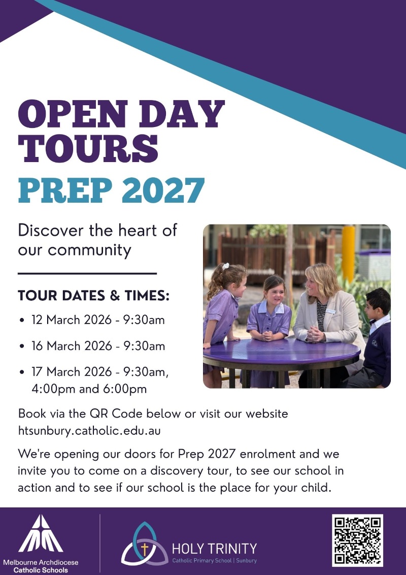 Posted on January 12, 2026 by MtCarmelOpen Days Holy Trinity Catholic Primary School Holy Trinity Catholic Primary School Open Days Prep 2027 Share this: Click to share on Facebook (Opens in new window) Facebook Click to share on Pinterest (Opens in new window) Pinterest Click to share on X (Opens in new window) X Click to print (Opens in new window) Print Click to share on Tumblr (Opens in new window) Tumblr Like Loading... Related