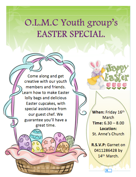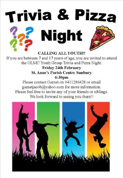 We are accepting hamper donations for a raffle that will be on sale to raise funds for the ‘Youth Group’ activities (Please hand them to the parish office before the event).