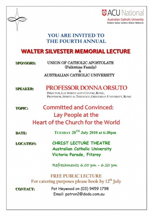 Friday 23 July at 5.00pm at The Oratory, NewMan College, University of Melbourne, 887 Swanston St. Parkville.