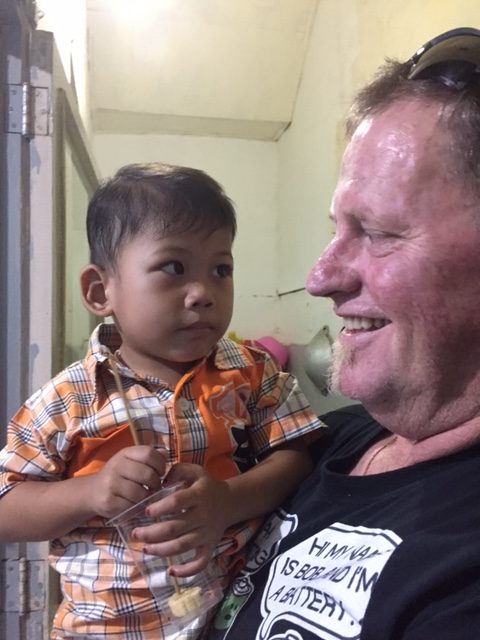 LAP run a school / learning centre three times a week at a small rented house in the poor Jakarta docks district. This is for the HIV + children and also for their carers who are taught the basic facts of the children’s condition and how to best cope. It is essential the children are given their ART medication every day because to stop, even for a short period, means any deterioration in their condition cannot be recovered. In addition they need to regularly be given the nutritional foods supplied by LAP ( vitamins, milk, etc ) . We four visitors spent the Saturday morning watching the LAP teachers ( Natasye & others) working with the children and their family carers. On the way Mick & Bernadette had stopped at a small shopping mall to buy sweets, doughnuts and milk drinks which made it a special morning for the children.